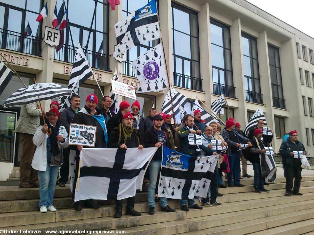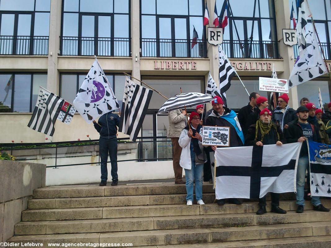 Et comme en Bretagne, tout finit par une chanson, les manifestants ont montré qu'ils avaient de la voix, entonnant le Bro gozh ma zadoù, l'hymne national breton, l'incontournable La Blanche Hermine (chanson) de Gilles Servat, et enfin une chanson militante de Glenmor reprise du Barzaz Breiz : le an Alarc'h http://www.bretagnenet.com/strobinet/barzaz/alarcht2.htm.