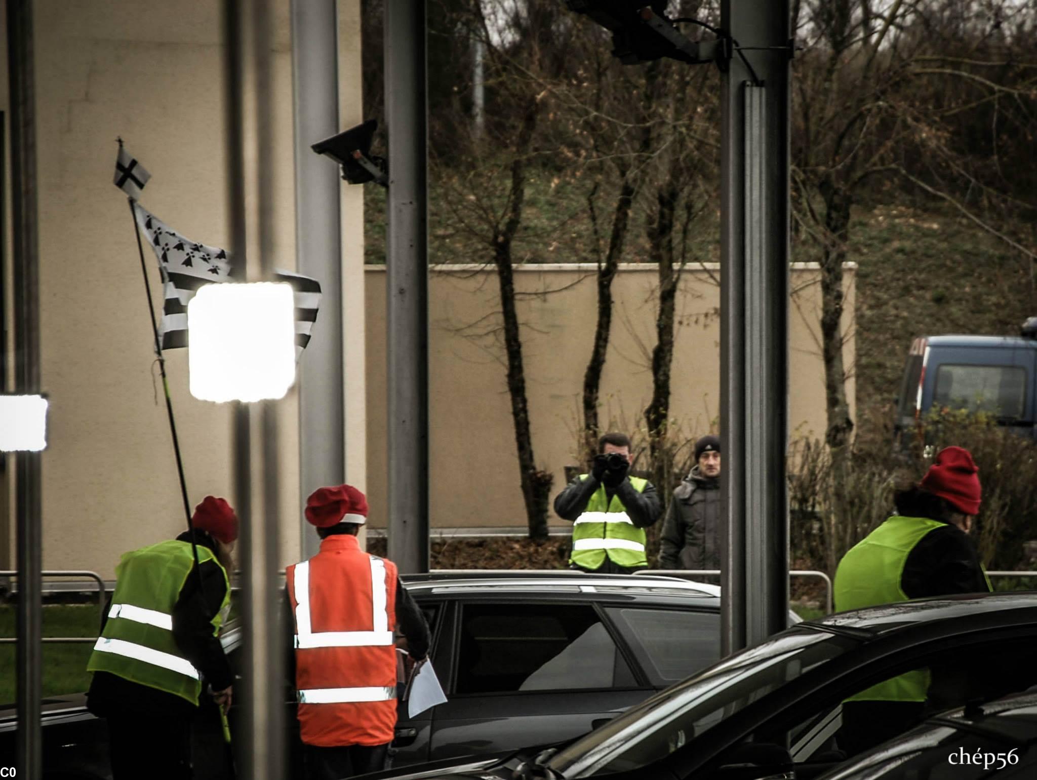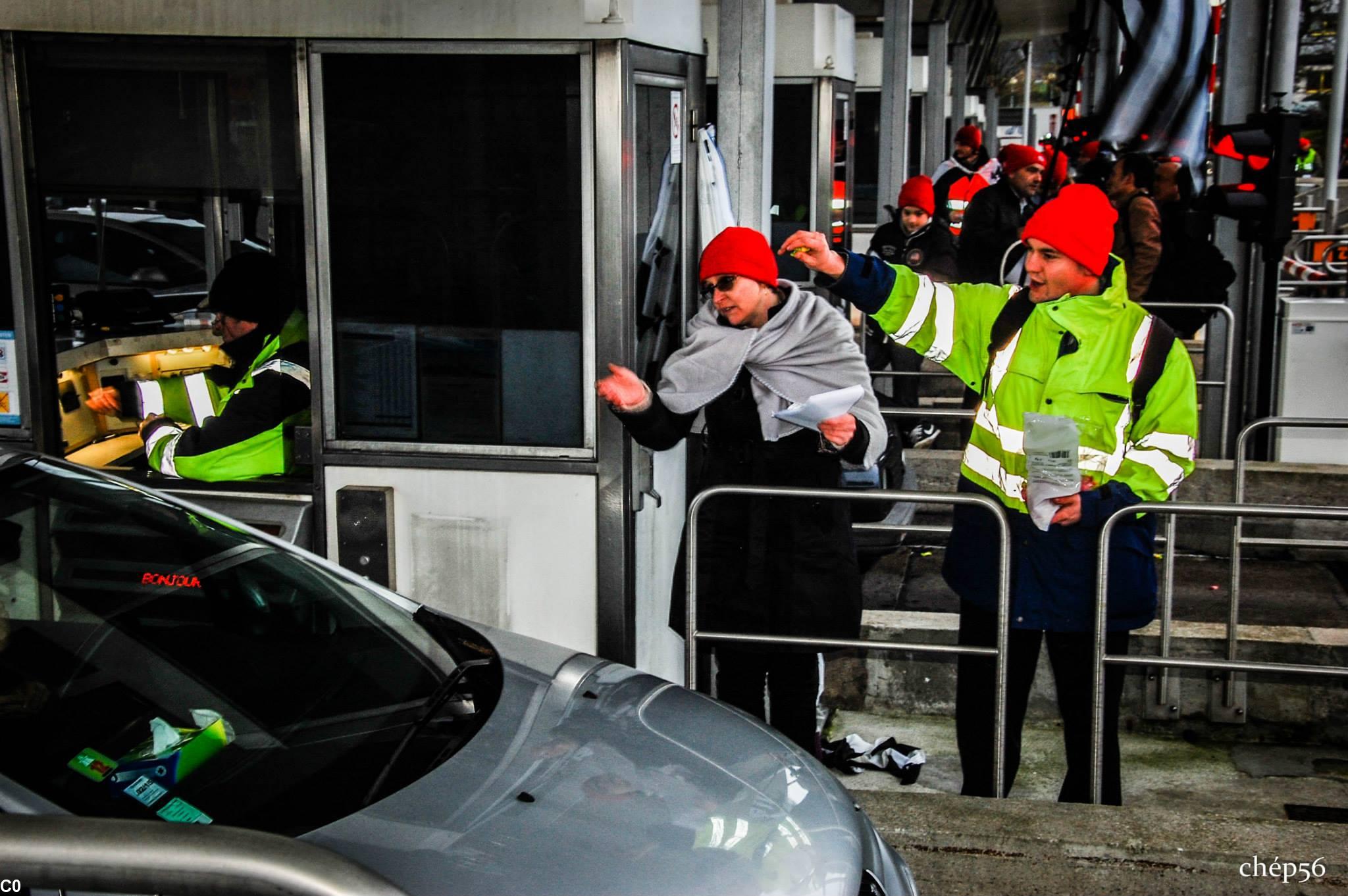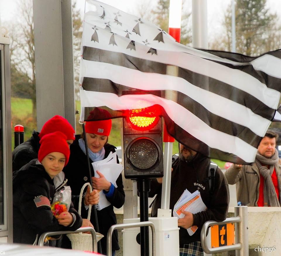 Arrivés au péage, les Bonnets Rouges ont été agréablement surpris par l'accueil qui leur a été réservé : coup de klaxons, grands sourires, signes de la main, et encouragements verbaux: "Merci de ce que vous faites" "Continuez surtout" etc...