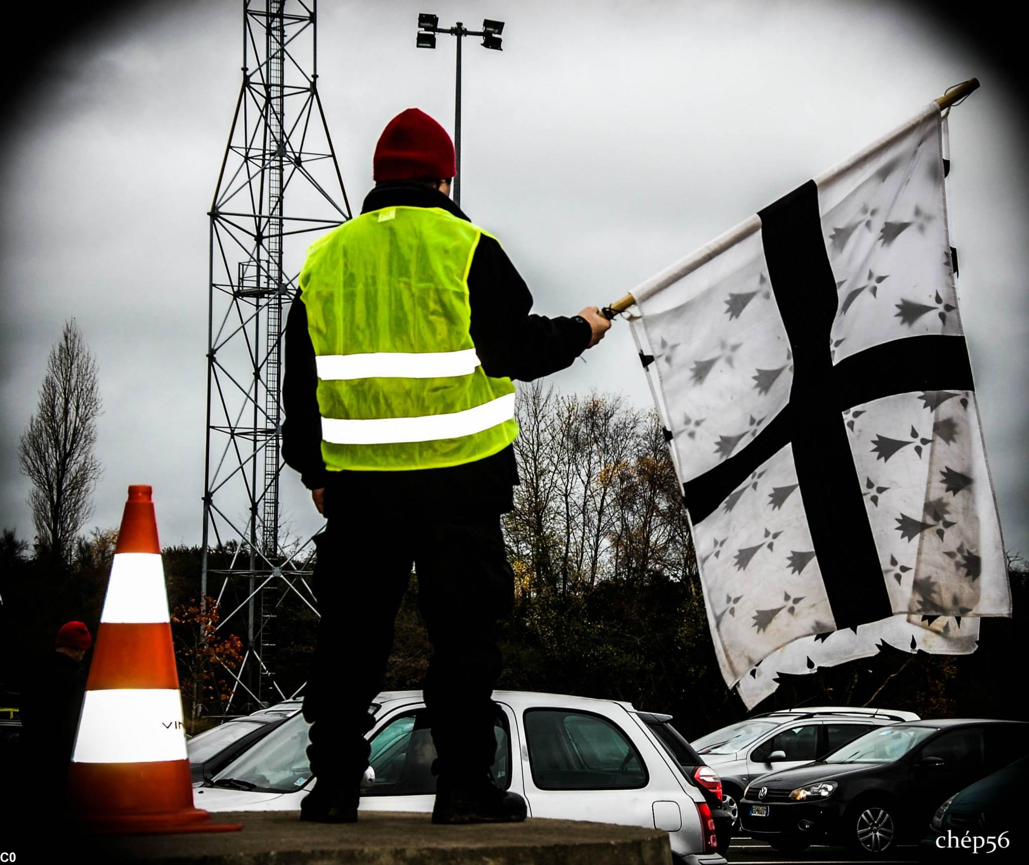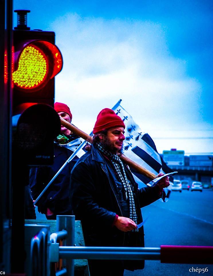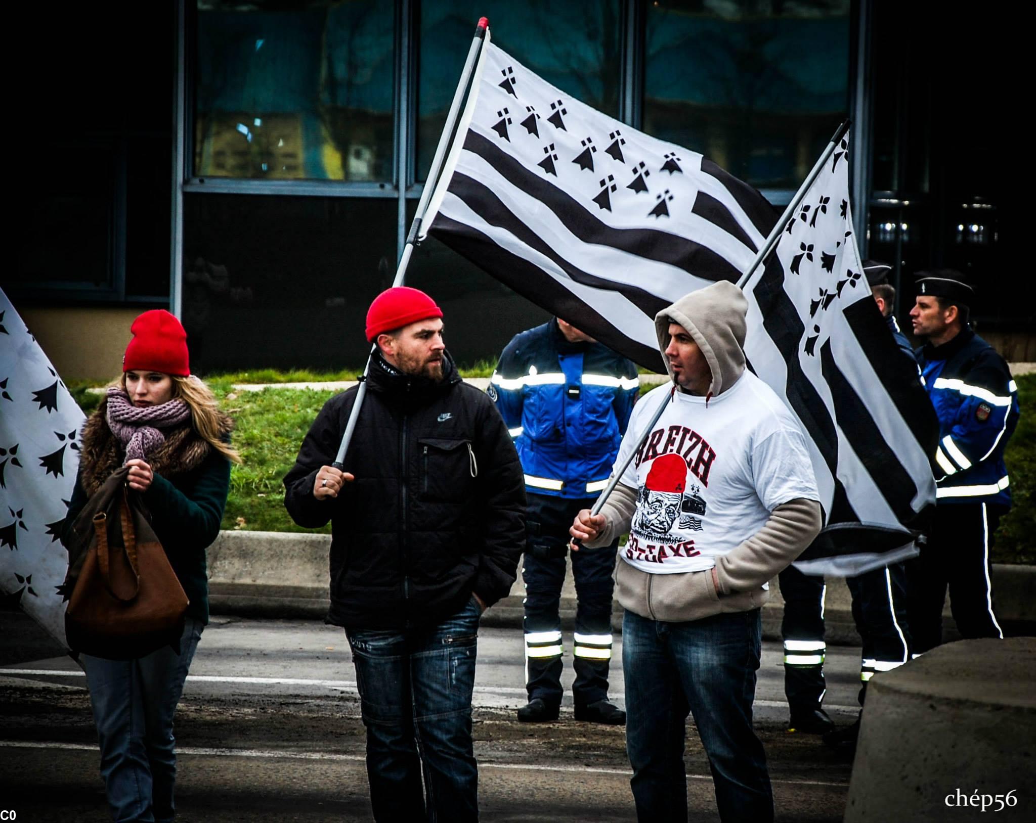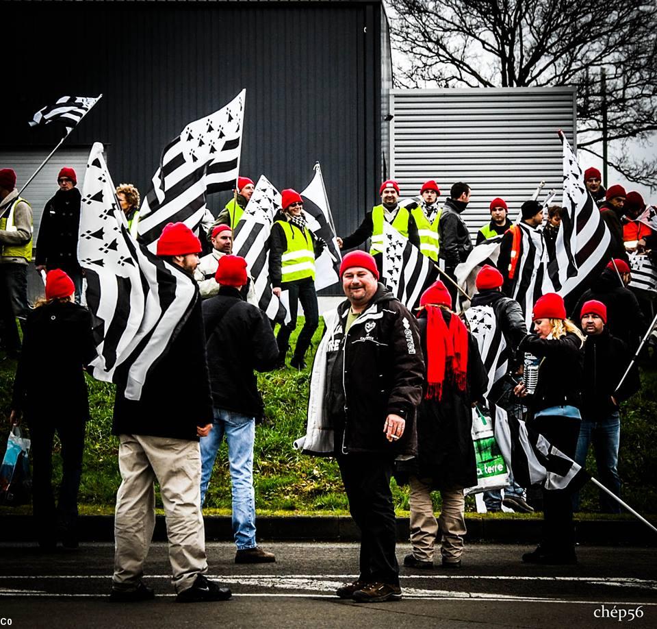 Rencontre fut aussi faite au lieu de rendez-vous avec les forces de l'ordre, qui ont ouvert la route aux Bonnets Rouges jusqu'au péage pour que ces derniers puissent passer en toute quiétude, et les ont accompagnés tout au long de cette journée de manière fort sympathique, avec des échanges cordiaux entre les deux côtés.