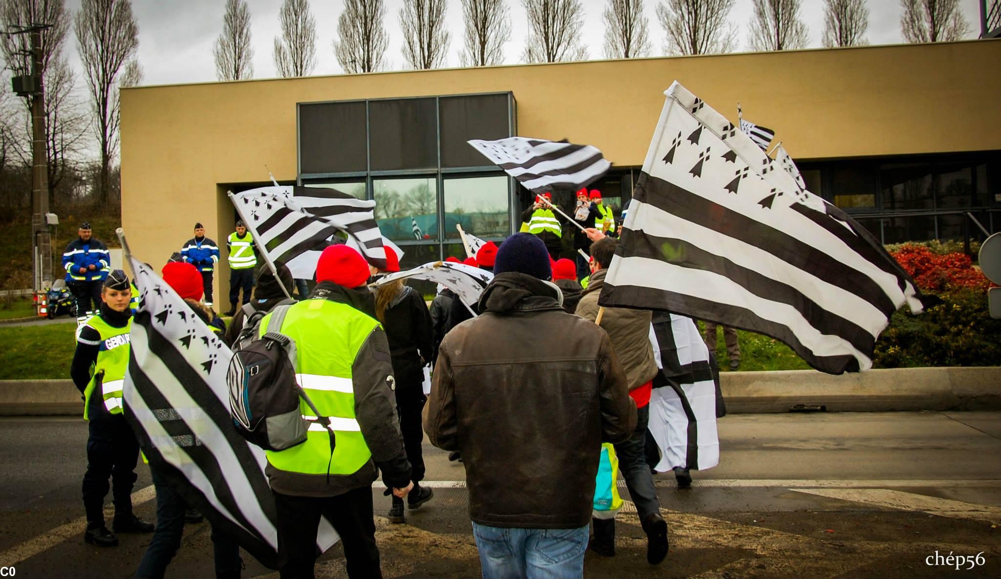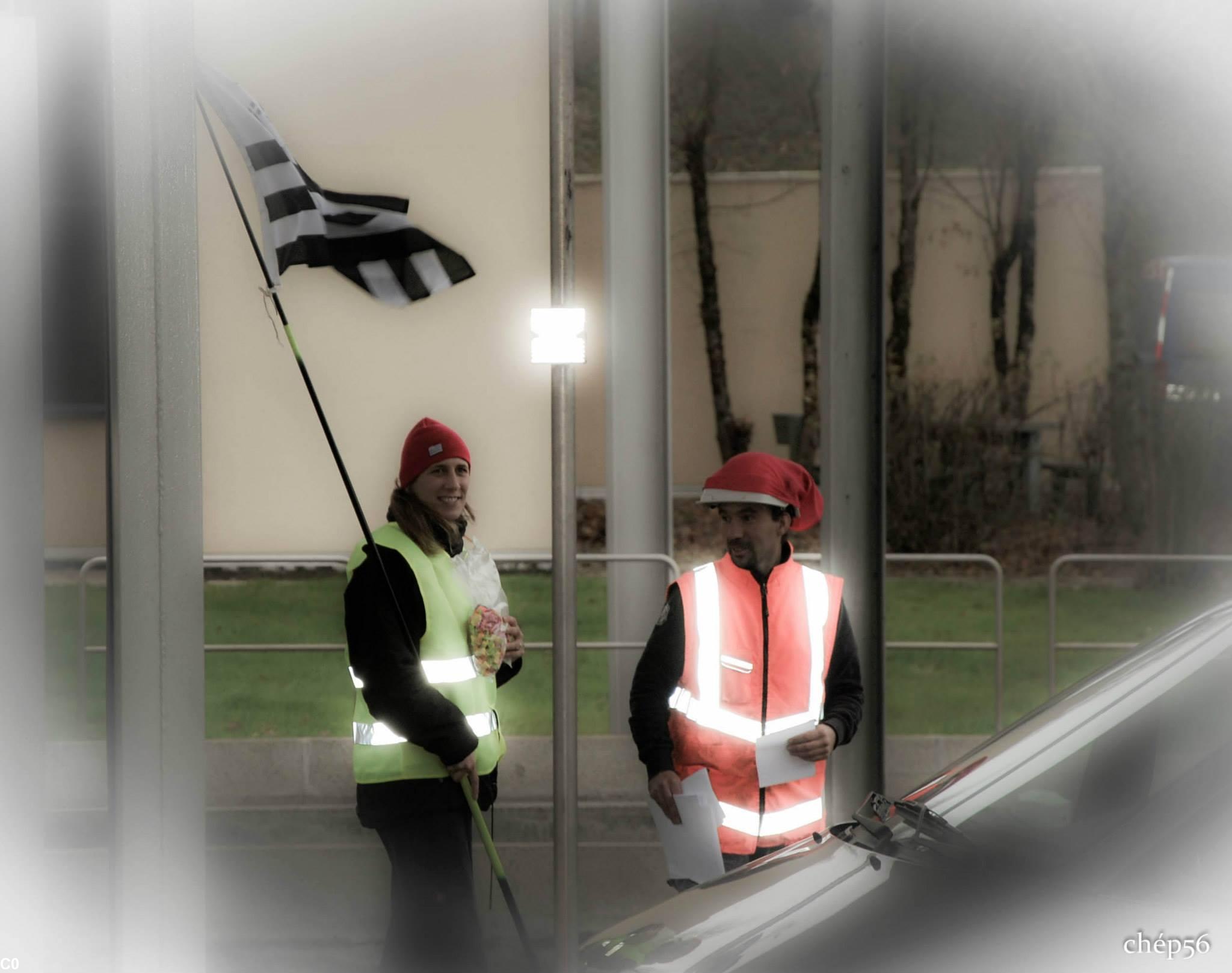 Pour terminer en beauté, après un repas sur place bien mérité, le groupe s'est ensuite dirigé vers la route de Lorient pour une opération escargot ambiance festive ! Là encore, les automobilistes klaxonnent, saluent et sourient... quelques-uns en nous voyant ont même sorti leur bonnet rouge pour l'agiter derrière la vitre !