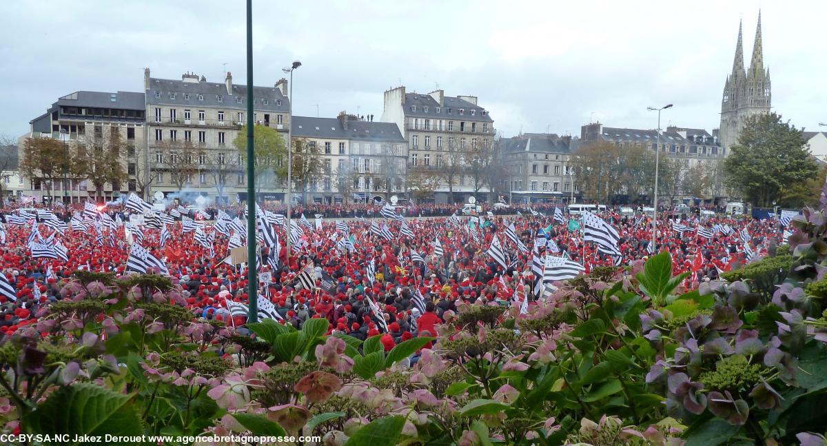Lors de la manifestation du 2 novembre 2013, flottait le vent du Celib (Comité d'étude et de liaison des intérêts bretons). Ce rassemblement d'acteurs des années 1950 qui a marqué l'histoire de la Bretagne et a abouti au plan routier breton, à la construction des voies rapides gratuites, à la charte culturelle, est dans tous les esprits. Pour gagner, les Bretons ont toujours eu besoin d'être unis. Les réactions de certains élus, d'une certains presse ne peut qu'inciter à ce rassemblement. Les propos véhéments exprimés à l'encontre des principaux instigateurs de la manifestation montrent le fossé qui se creuse entre les gens de terrain et un personnel politique national éloigné de l'évolution du monde. La presse la plus conservatrice et le pouvoir central, en véhiculant des messages alarmistes sur les éventuels casseurs issus des opposants au mariage pour tous et des groupes d'extrême-droite, font preuve d'une méconnaissance totale des enjeux ou d'une mauvaise foi à peine voilée visant à étouffer le mouvement dans l'½uf. Quelques échauffourées ont émaillé le défilé, certains manifestants s'en prenant non pas au mobilier urbain ou aux commerces (qui par ailleurs soutenaient le mouvement) mais au symbole du pouvoir, la Préfecture, chose somme toute classique dans une manifestation de cette ampleur. A noter qu'aucun drapeau français n'était visible, mais uniquement des centaines de Gwenn-ha-Du (le drapeau breton) et des milliers de bonnets rouges (symboles choisis par les organisateurs pour rappeler la révolte des Bonnets rouges en 1675) ; ce qui était notamment révélateur de l'inexistence d'infiltration de groupuscules d'extrême-droite française. Ces contre-vérités médiatiques n'ont fait que renforcer le mouvement et lui donner une ampleur populaire. Car en définitive, ce ne sont pas les casseurs qui font peur au pouvoir central mais les Bretons. Un Breton bâillonné peut servir ses intérêts mais pas un Breton libéré du carcan jacobin.